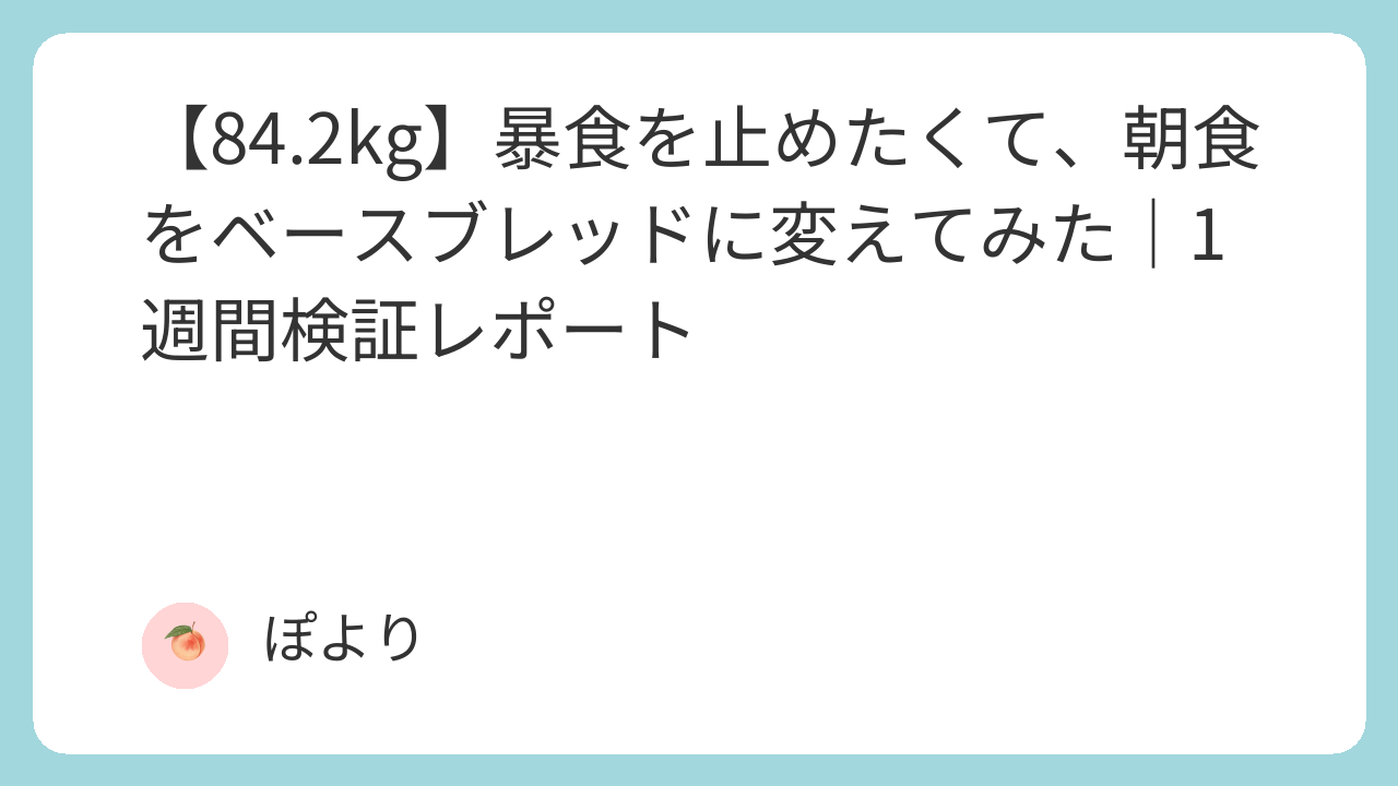 【84.2kg】暴食を止めたくて、朝食をベースブレッドに変えてみた|1週間検証レポート